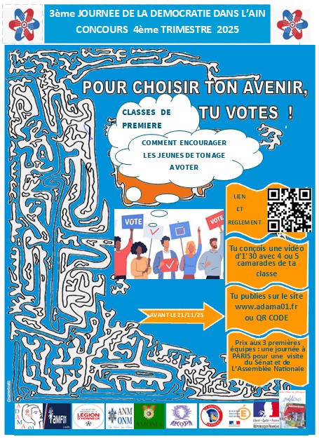 Moyen: réaliser une vidéo d’une durée de 1’30 maximum, tout format de smartphone et tablette, valorisant/encourageant le vote chez les jeunes. Cette vidéo sera en format vertical (portrait). La vidéo devra débuter par le titre « Pour choisir ton avenir, tu votes » et pourra finir par un slogan de votre choix. La partie titre et slogan sera en plus de la durée de1’30.